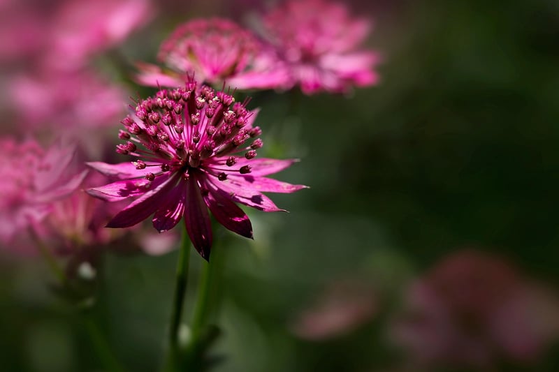 Autumn is characterized by rich hues of red, orange, and yellow with flowers like chrysanthemums, dahlias, and asters.